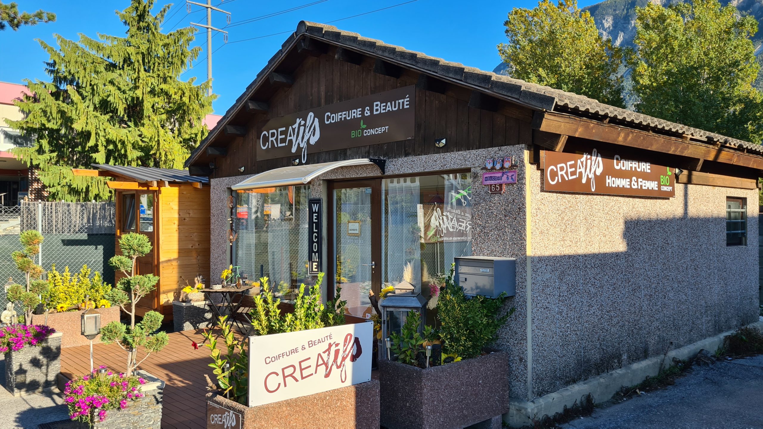 Situé sur la route de Salquenen / Salgesch notre salon est lové dans un petit chalet cosy. Nous prenons soin de vous dans une atmosphère chaleureuse et sympathique. L’été vous serez même convié(e)s à prendre un café ou une boisson de votre choix sur la terrasse.
